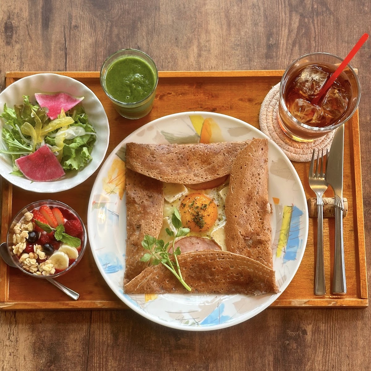 This cafe specializes in galettes, a traditional French dish that is both hearty and flavorful. A must-try from their menu is the モーニングガレット: a delightful combination of savory roasted ham, fresh eggs, and creamy Camembert cheese, served with a refreshing salad, a drink of your choice, and their special smoothie—all for just JP¥1,480. The aromas that waft through the air as the galettes are prepared evoke a sense of warmth and home.